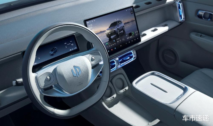 拥有4515mm车长,轴距达到2735mm的零跑B10,车内采用软质材料加以包裹,内饰比较规整且富有时尚感,看似简约但不简单,扁平的多功能方向盘,空调出风口,包裹性不错的座椅,丰富的储物槽以及融合了很多功能的中控大屏等,既透着质感也注重实用性和科技感。
